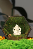 Evergreen Ganesh Ji's terrarium in real preserved moss, crafted for a modern spiritual touch.