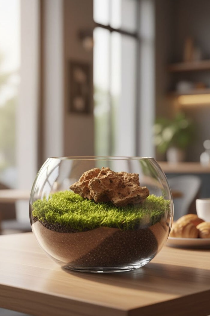 Living terrarium with real preserved moss, crafted for a modern spiritual touch.